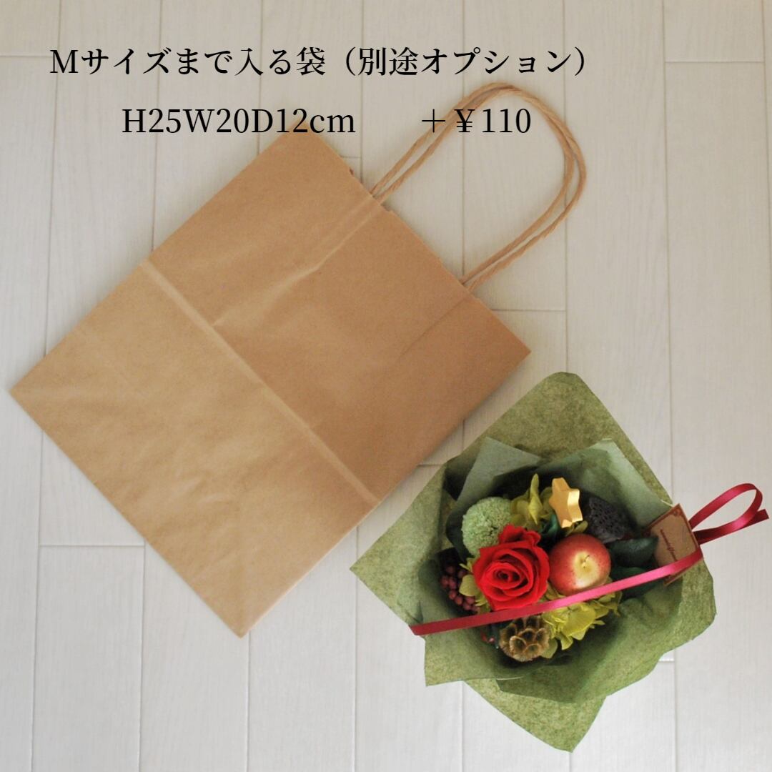 Mサイズまで入る紙袋は別途110円です。必要な場合は、オプションにて選択してください。