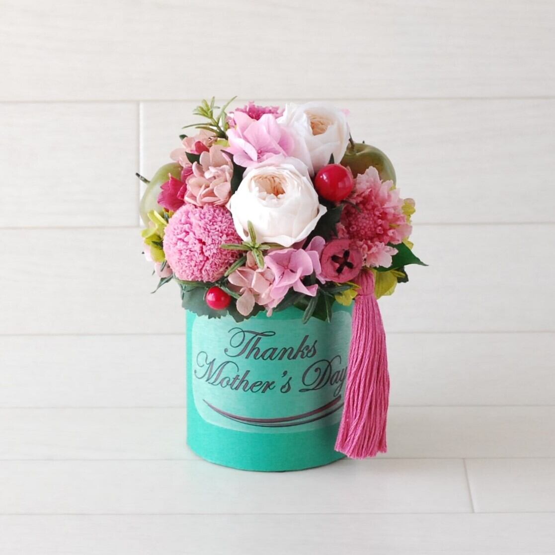 母の日ギフト プリザーブドフラワー メッセージフラワー Mサイズ チェリーピンク|文字入れできるボックスアレンジ