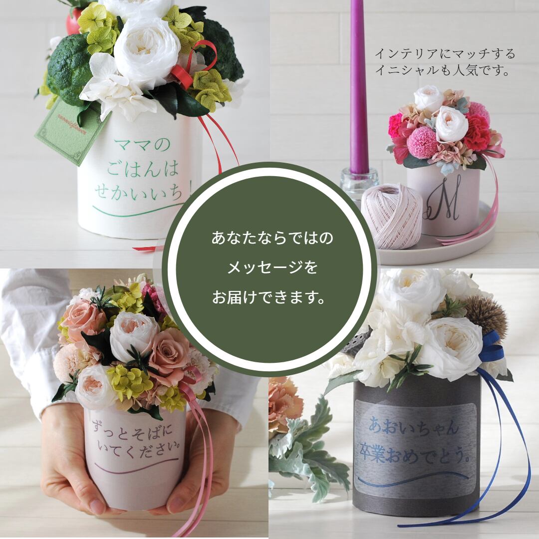 プリザーブドフラワーの専門店roomicflowerルーミックフラワーがお届けする、一人ひとりの想いを贈るフラワーギフト「Message!」