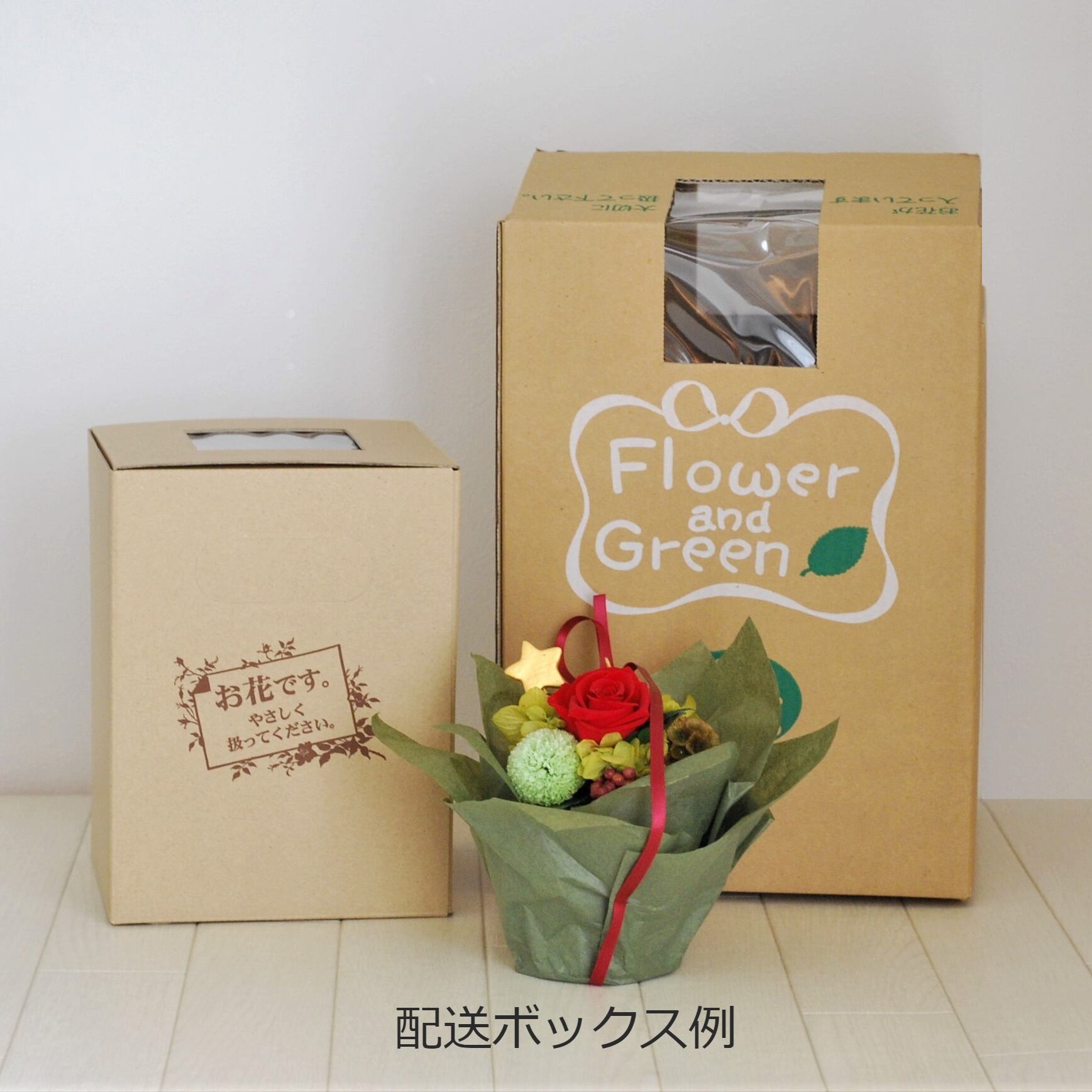 プリザーブドフラワーは自然のお花を加工したものです。細心の注意をはらって製作・梱包しておりますが、性質上多少の花びらの欠け、小さな 花材の多少のこぼれはご理解をお願いいたします。